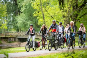 Am letzten Sonntag im April, so ist es gute Tradition in Dülmen, wird angeradelt. Dülmen Marketing und die Stadt Dülmen laden gemeinsam am Sonntag, 26.04.2026, alle Radbegeisterten zur Teilnahme am 46. Volksradwandertag und am Fahrradaktionstag ein. In diesem Jahr führen die ausgewählten Radtouren durch die malerische Naturland-schaft zum Ferienpark Dülmener See. Gestartet wird, wie gewohnt, am 26.04.2026 zwischen 09:30 Uhr und 11:00 Uhr am Dülmener Bahnhof. Neben einer Normalstrecke (ca. 40 km) wird es auch wieder eine etwas kürzere Familienstrecke (ca. 30 km) geben. Unterwegs gibt es in diesem Jahr spannende Pausenstationen: Am Campingplatz Tannenwiese (Familienstrecke) dürfen sich die Radbegeisterten u.a. auf Führungen über den Campingplatz und spannende Infos freuen. Die Kids können sich auf der Hüpfburg austoben. Am Haus Visbeck (Normalstrecke) werden die Teilnehmer vom Ritter von Visbeck persönlich mit der Fanfare begrüßt. Im Naturpott Borkenberge (Familienstrecke + Normalstrecke) liefern neben der regulären Speisekarte der POTTkantine extra für den Volksradwandertag entwickelte Snacks von deftig bis süß Energie für den weiteren Weg. Außerdem gibt es hier ein buntes Rahmenprogramm für Kinder und Radwandernde, die sich fürs Camping interessieren. Am Schloss Sythen (Familienstrecke + Normalstrecke) erwartet die Teilnehmenden eine kleine Stärkung vor traumhaft malerischer Kulisse. Am Zielort am Ferienpark Dülmener findet der Fahrradaktionstag der Stadt Dülmen statt. Die Teilnehmer dürfen sich auf interessante Infostände und Aktionen rund um die Themen Fahrrad, Natur und Camping freuen. Besonders schön: Beim Bummeln über die Veranstaltungsfläche können die Besucher einen traumhaften Seeblick genießen und den Ferienpark Dülmener See kennenlernen. Auch die kleinen Radler dürfen sich auf viele spannende Angebote vor Ort freuen. Für Essen und Trinken ist natürlich bestens gesorgt. Weitere Infos, Flyer und Postkarten gibt es ab Mitte April bei Dülmen Marketing.